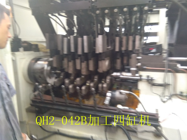 QH2-042變力曲軸圓角滾壓及滾壓校直機(jī)床(發(fā)明專利號1823602)是與武漢理工大學(xué)共同開發(fā)的一款高檔數(shù)控設(shè)備。該機(jī)床為九鉗直立布置,可以一次性對所有四缸曲軸完成的變力滾壓,自動檢測和自動滾壓校直的加工。該機(jī)床帶有測力器,自動檢測工件零位,自動檢測記錄工件加工情況和滾輪破碎自動檢測等功能,可以完全保證工件的加工質(zhì)量。具備與著名德國的圓角滾壓設(shè)備制造商Hegenscheidt公司產(chǎn)品同樣的功能,具有極高的性價比。