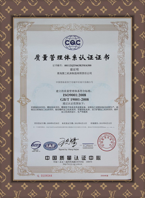 質(zhì)量管理體系認(rèn)定證證書